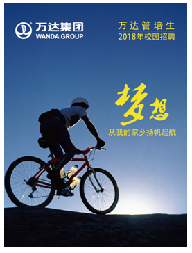 1、 培养目标:管理培训生的培养目标是万达广场的中高层管理人员,以“梦想,从我的家乡杨帆起航”为主题,帮助2018年应届大学毕业生在其家乡所在城市就业,进入万达这个国际一流企业,成长为商业地产领域的高级人才。